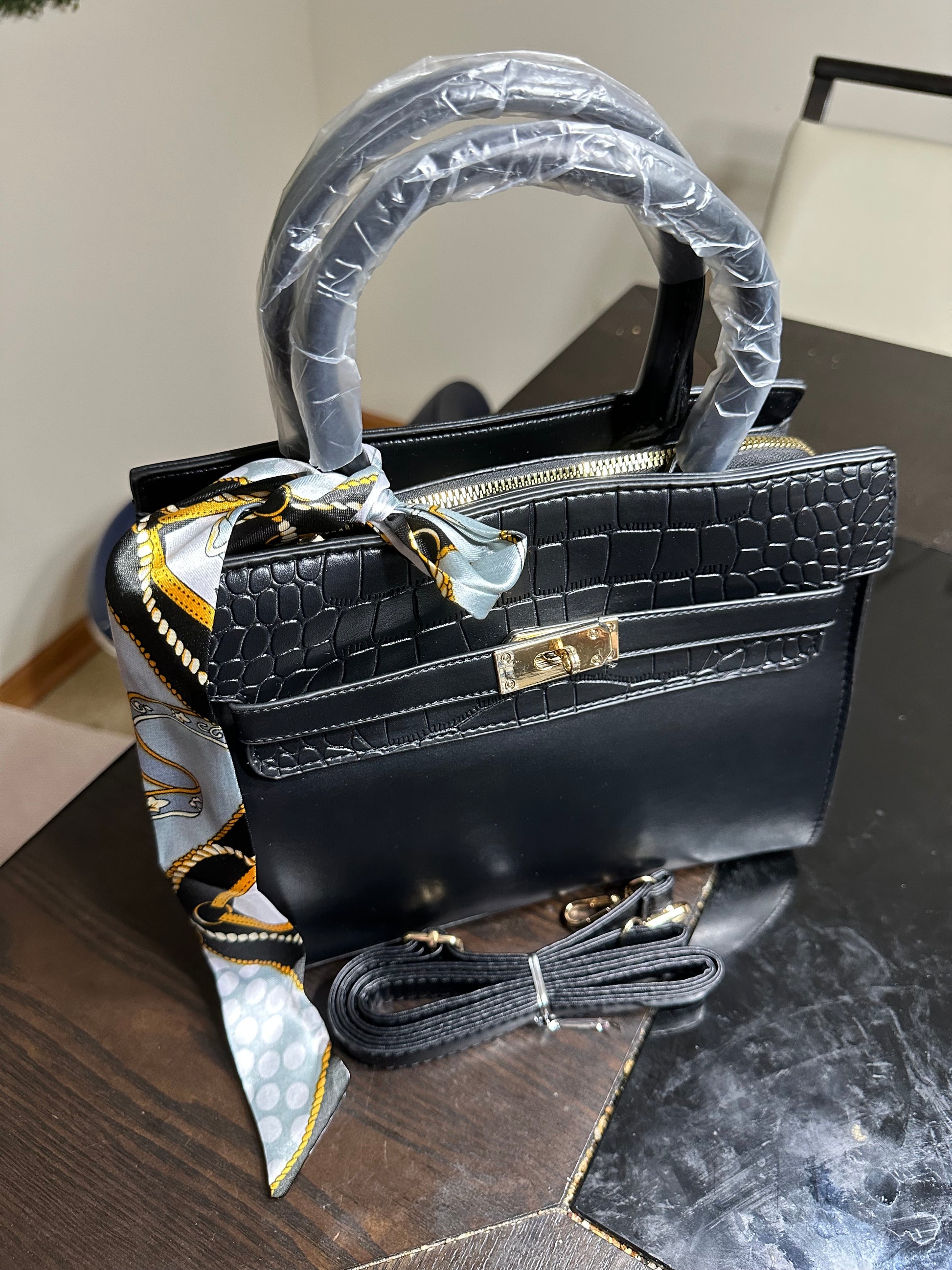 Introducing Antonia, the stylish black leather purse that comes with an attachable purse and scarf. Perfect for any occasion, this purse offers versatility and functionality for all your essentials. Made with high-quality leather, it exudes elegance and sophistication. Upgrade your wardrobe with Antonia.