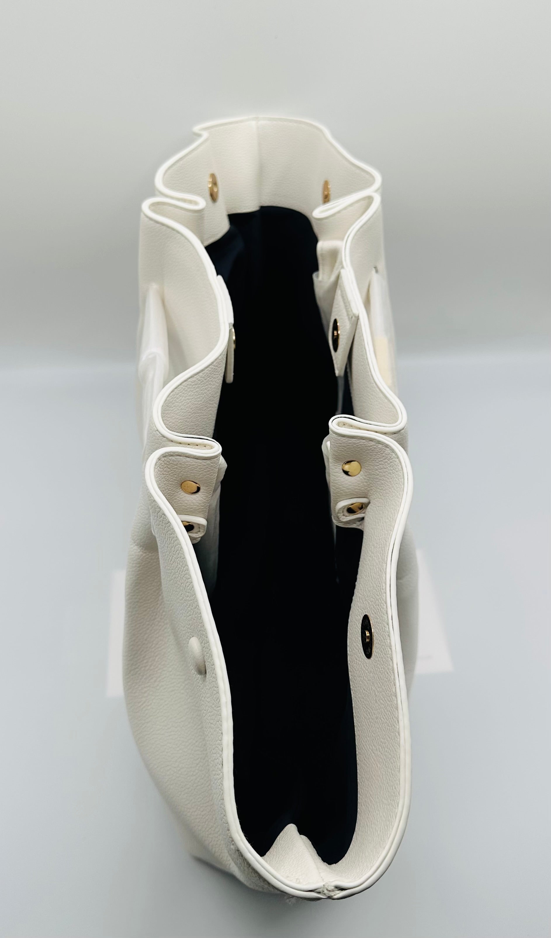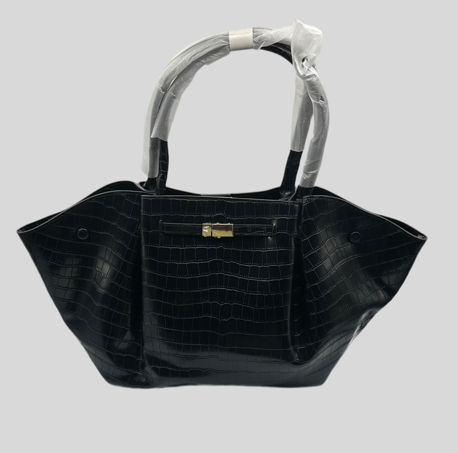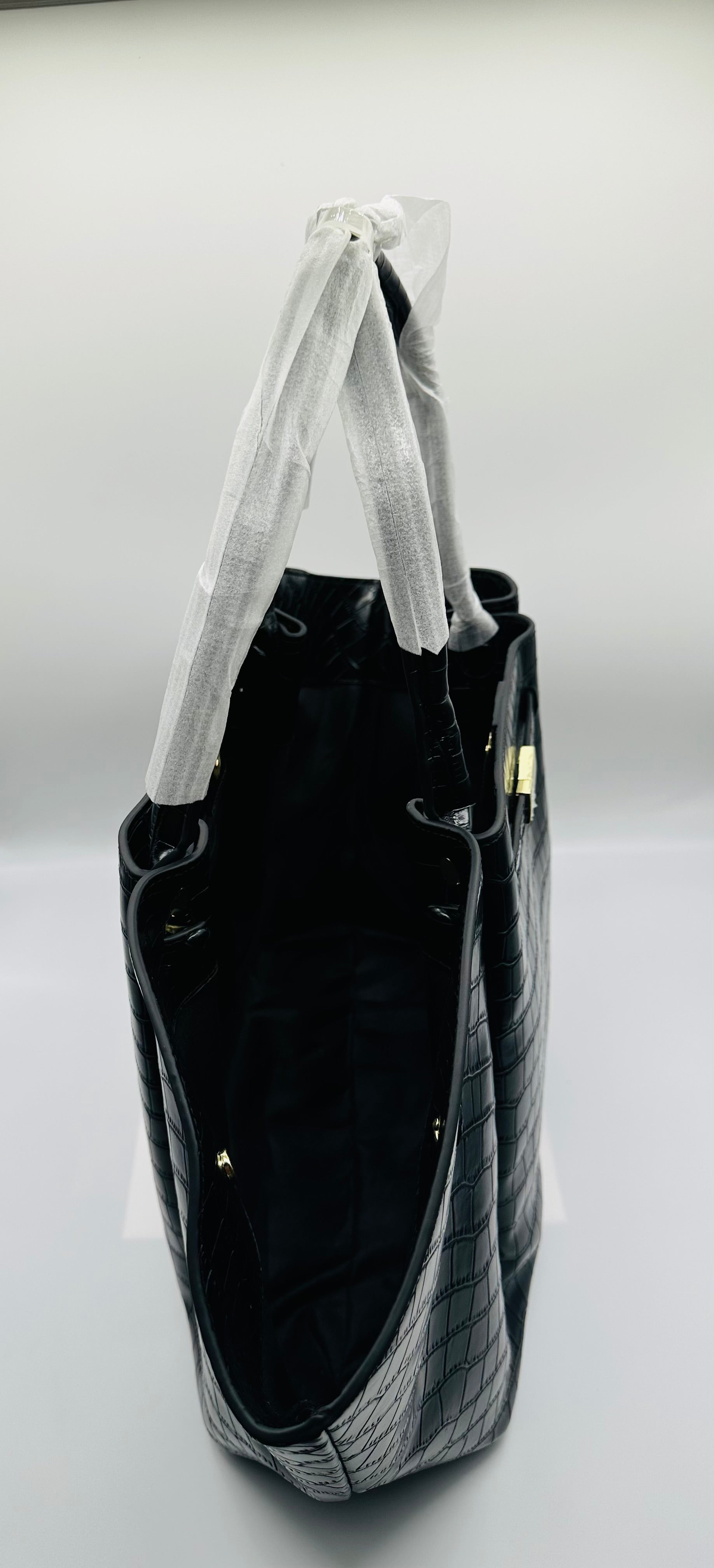 Experience luxury without breaking the bank with our Baundiemax bag! It has black inner lining material. Made from cowhide grain leather and featuring large size and golden hardware. This winged tote bag adds a touch of elegance to any outfit. Affordable and stylish, it's the perfect addition to your collection.
