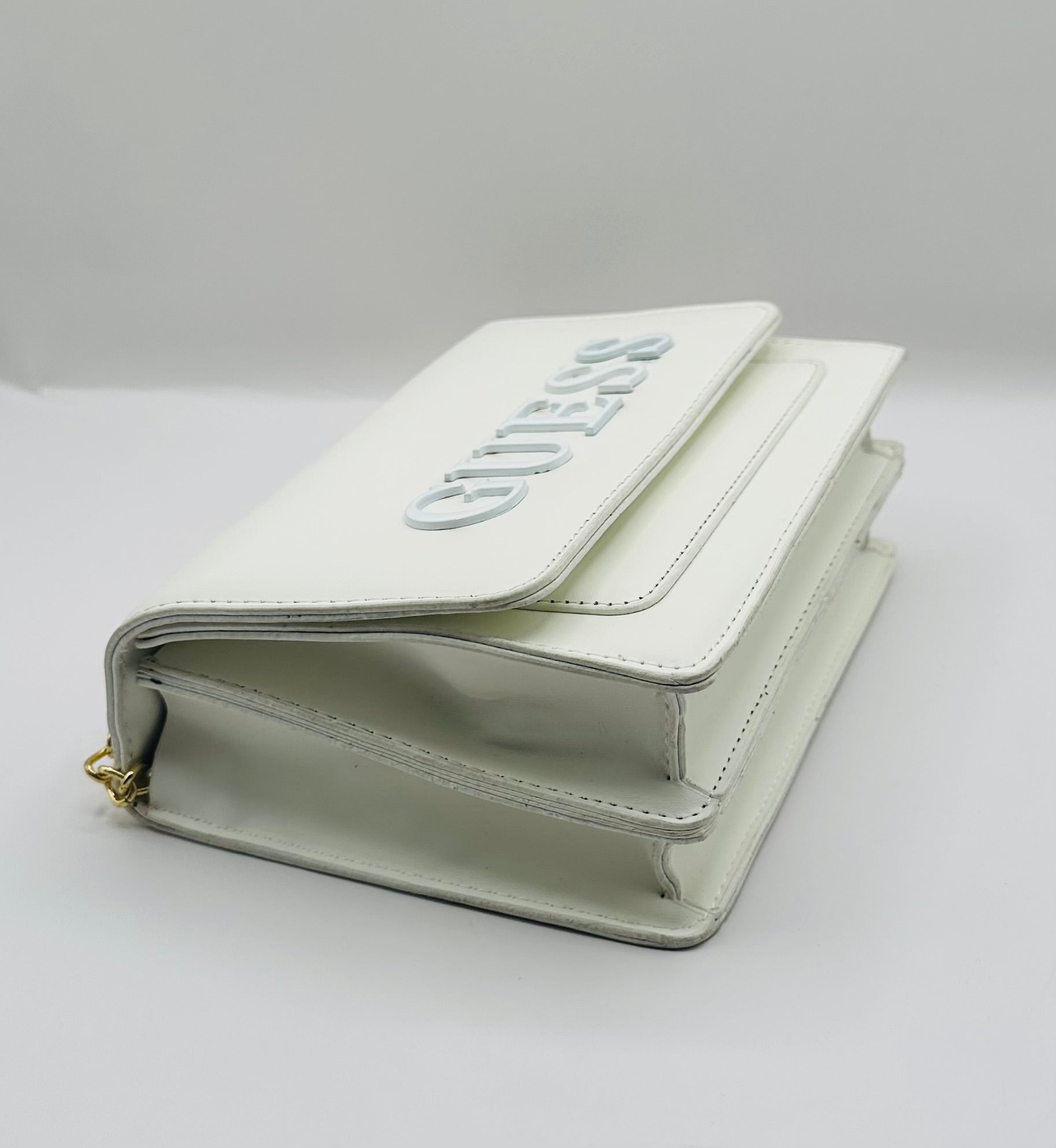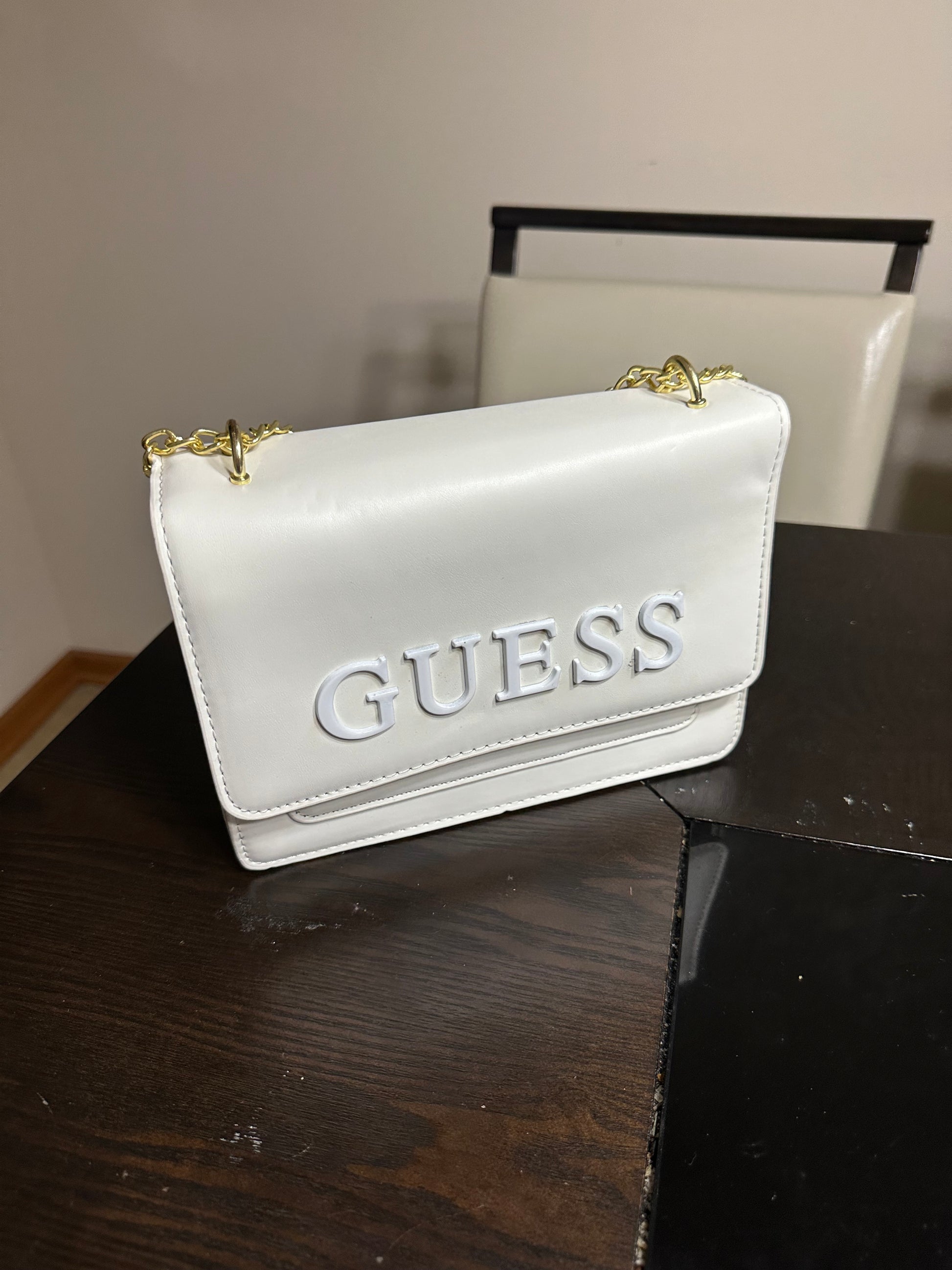 This elegant Guess crossbody purse features a sleek black design, perfect for any outfit and occasion. Its versatile and convenient crossbody style allows for hands-free carrying while on the go. A must-have accessory for any fashion-forward individual.