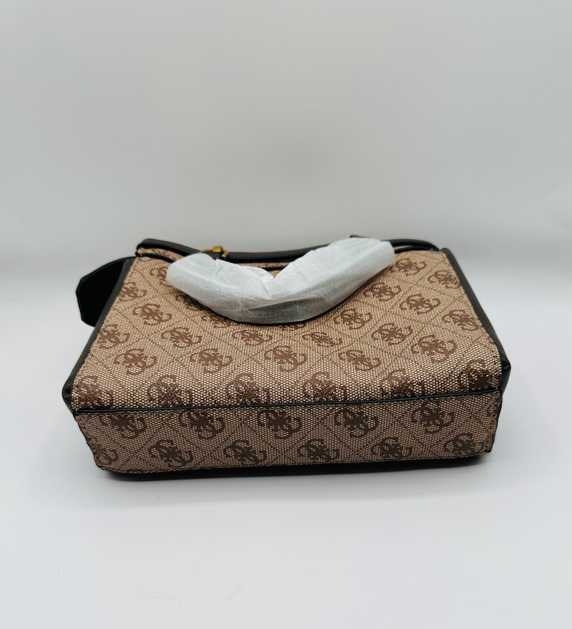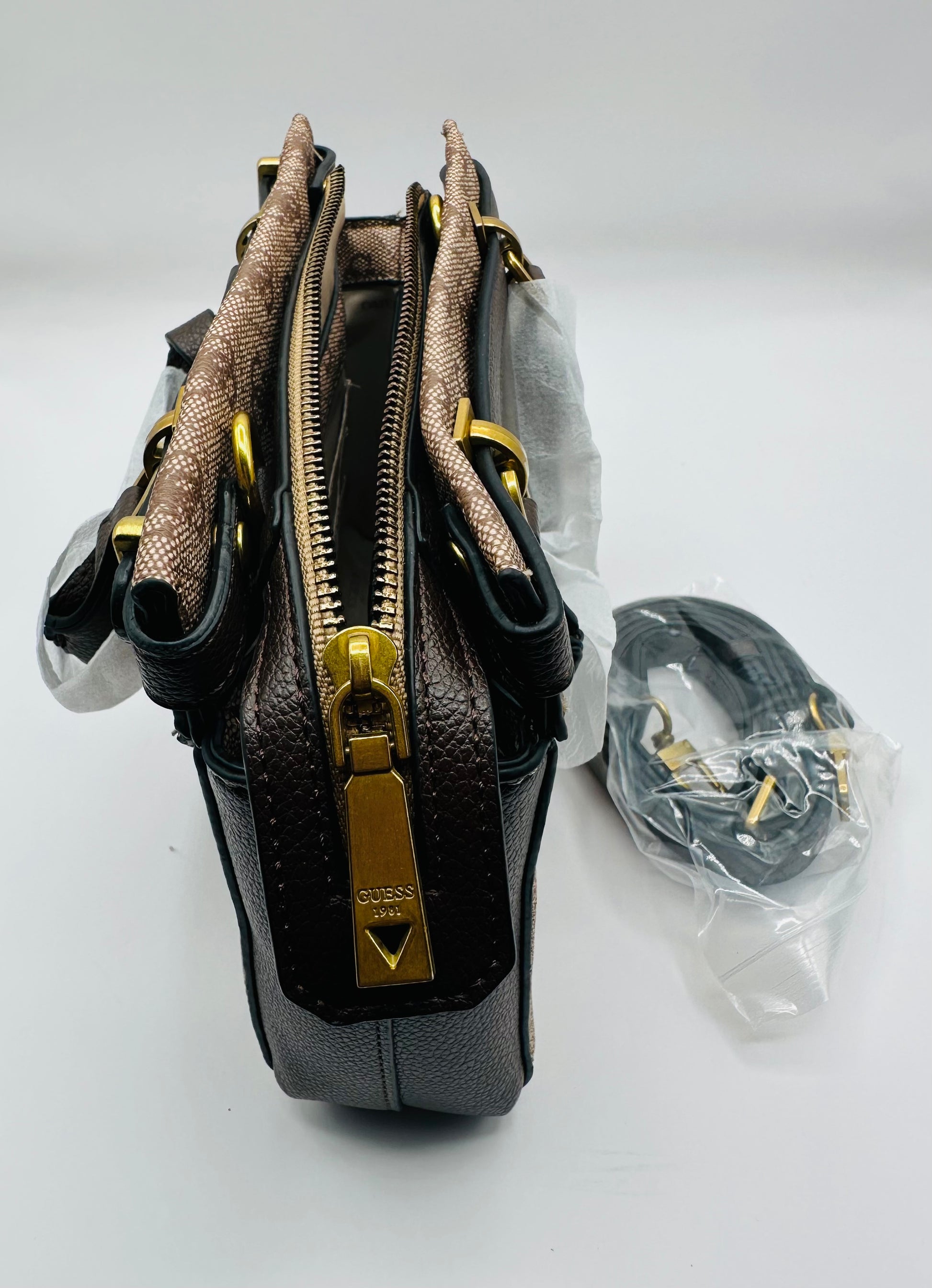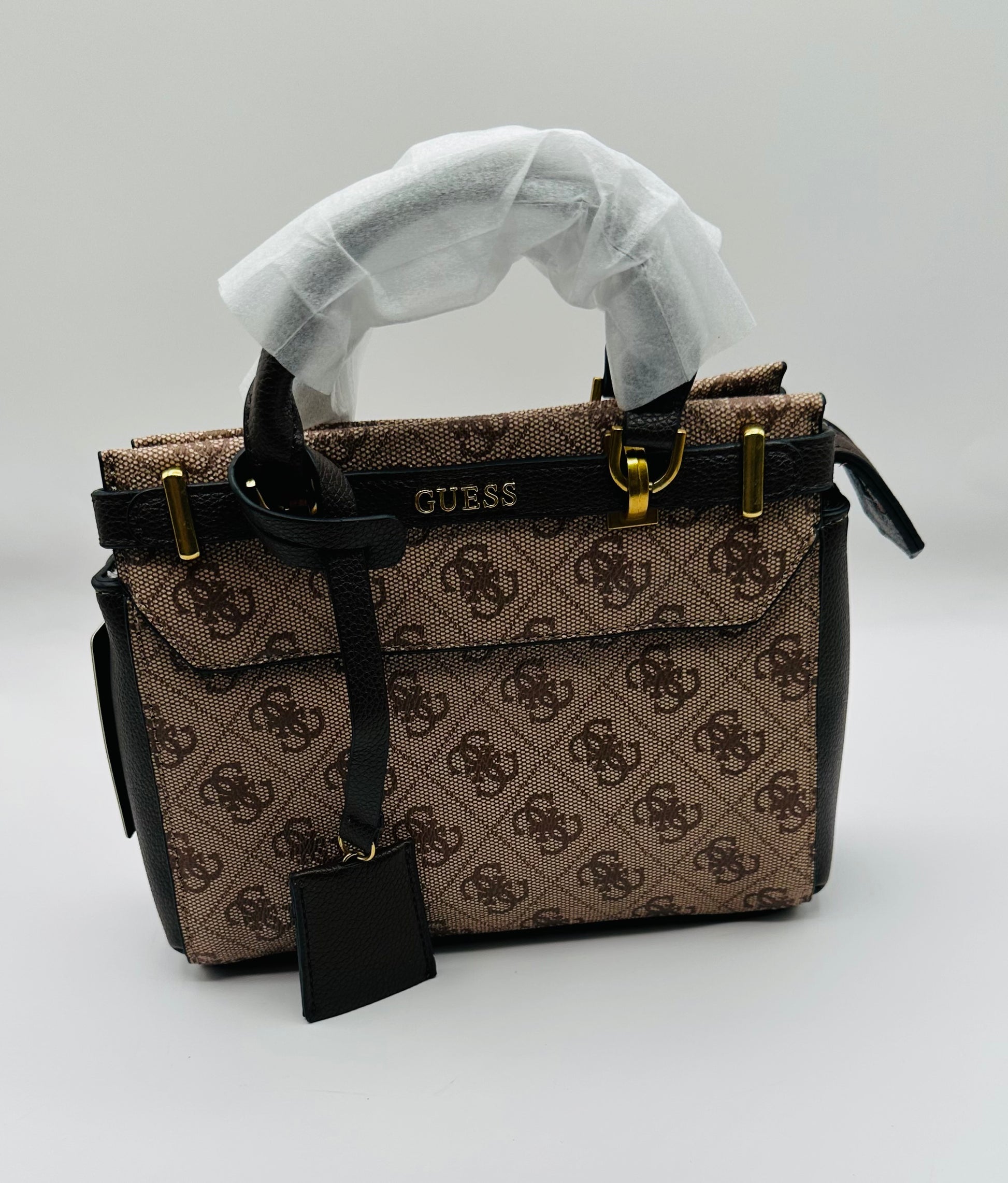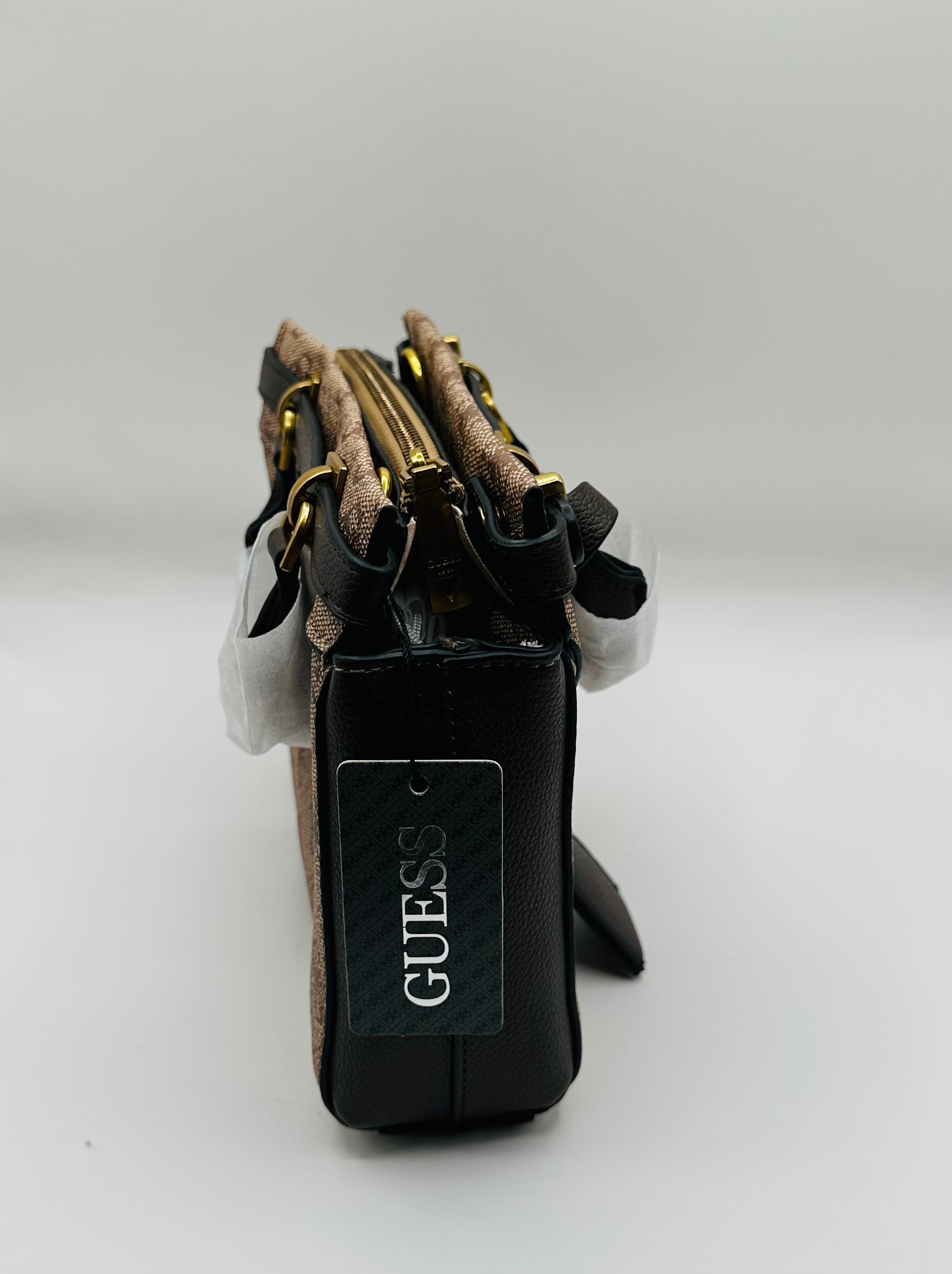 Expertly designed to elevate your style, the Guess crossbody purse features an attachable strap in a rich brown color. With its versatile and practical design, this purse brings both fashion and functionality to your wardrobe. Make a statement with this must-have accessory.