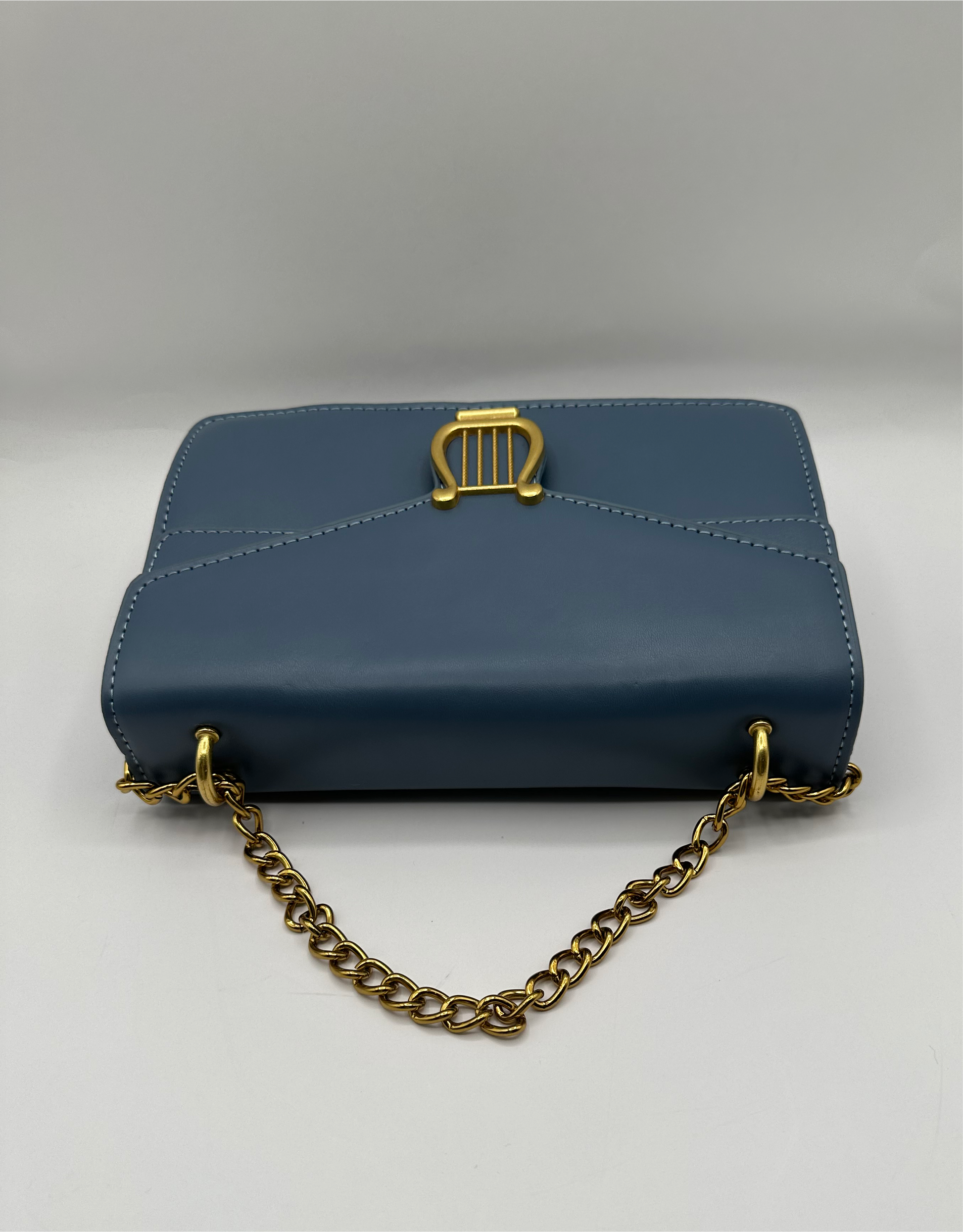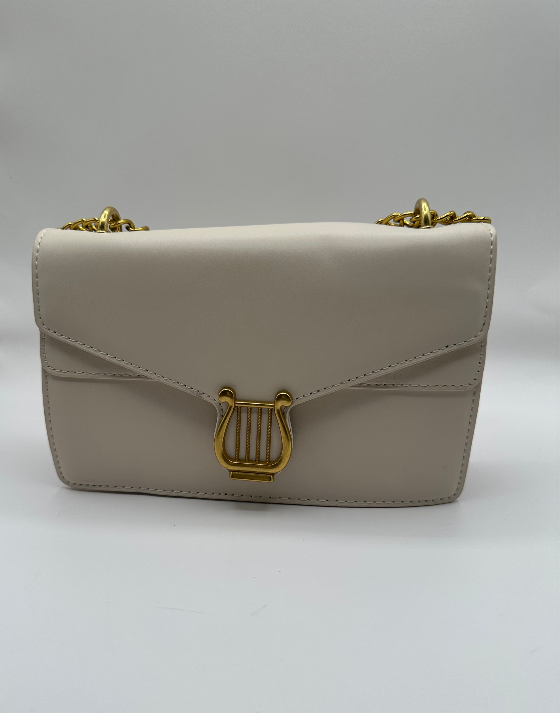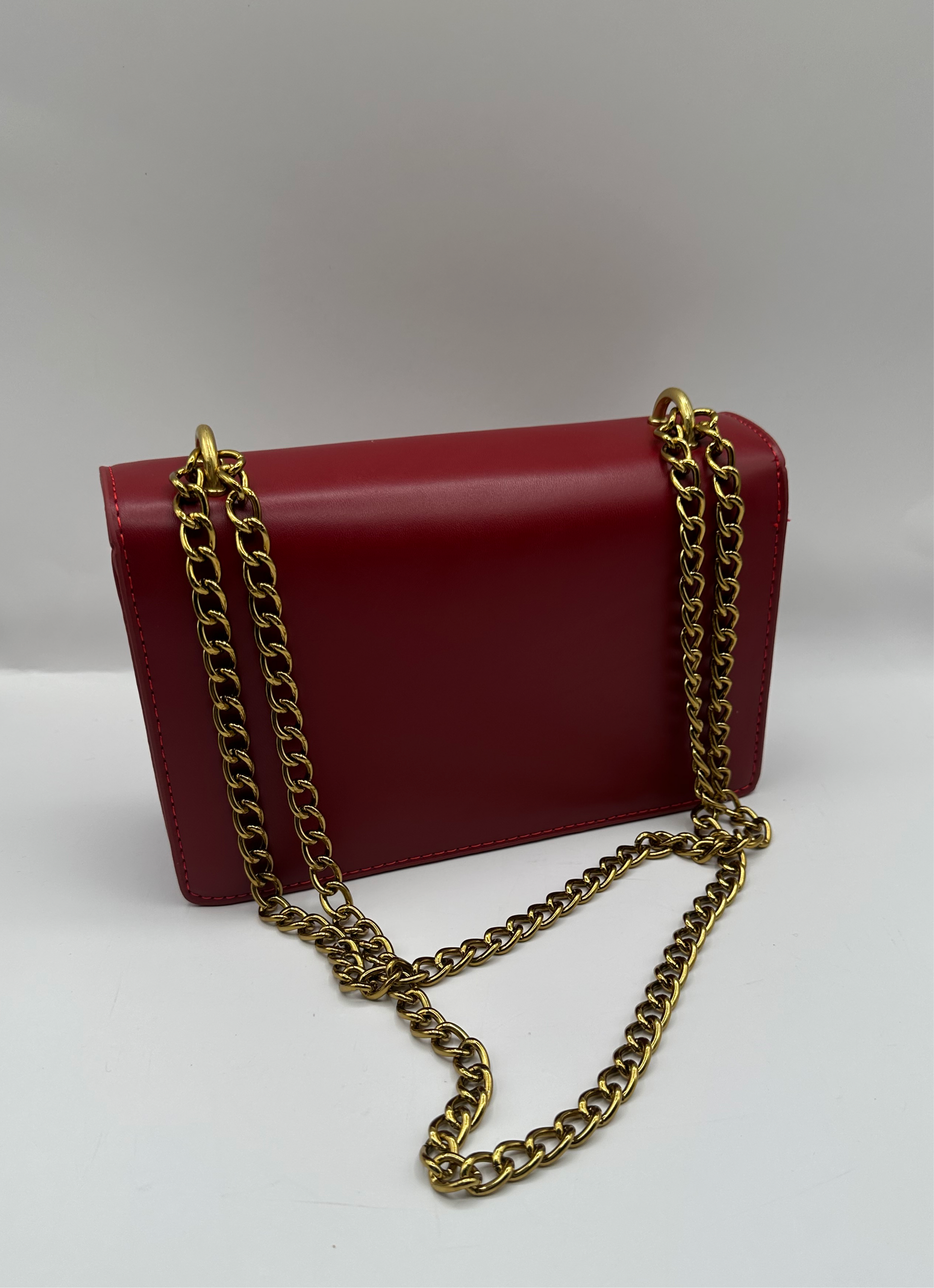 Quality leather purse with golden metal strap. This hand bag is a perfect accessory for any occasion. Made with high-quality leather, this handbag offers durability and style. Carry your essentials in style and elevate any outfit with Josephina.