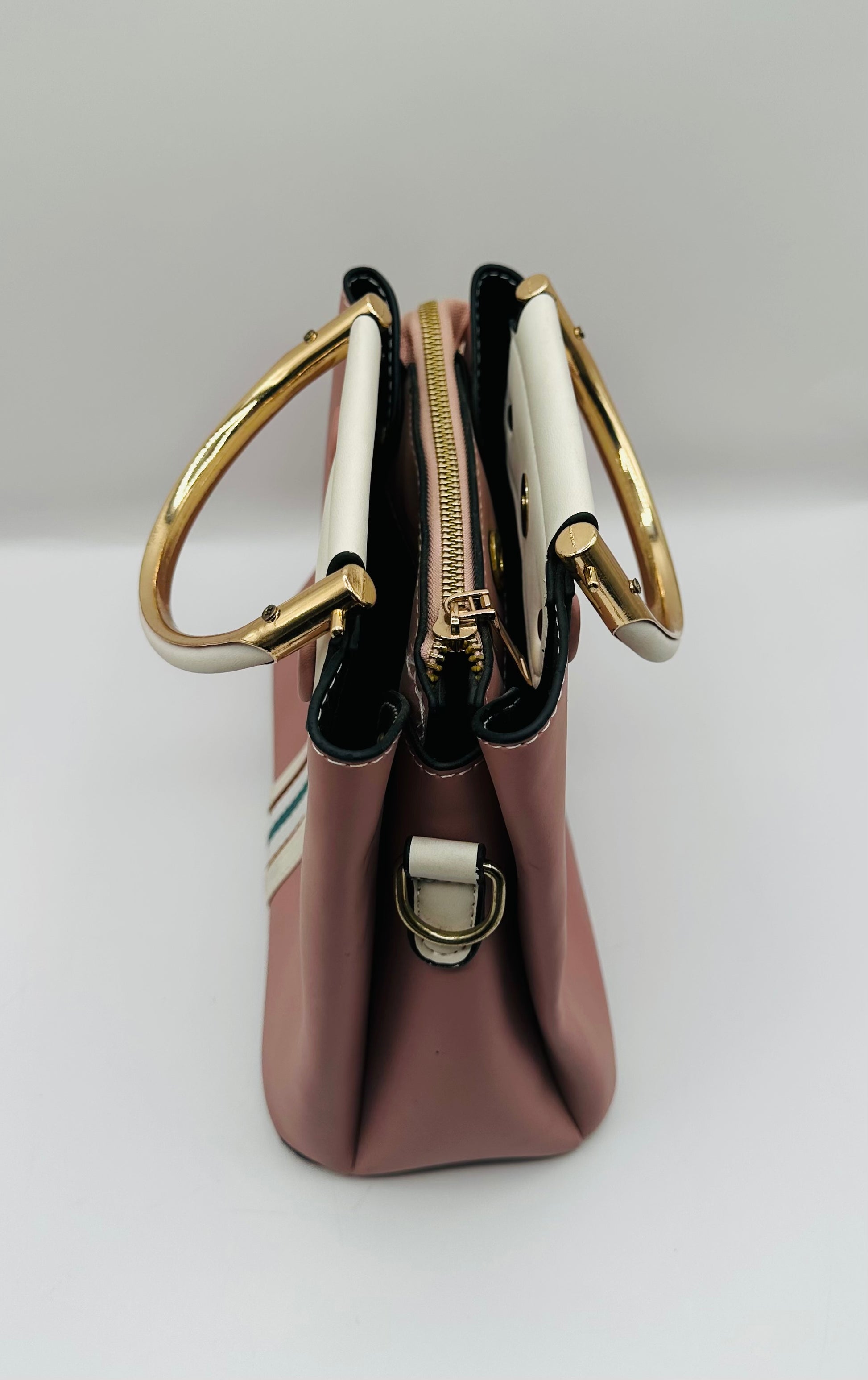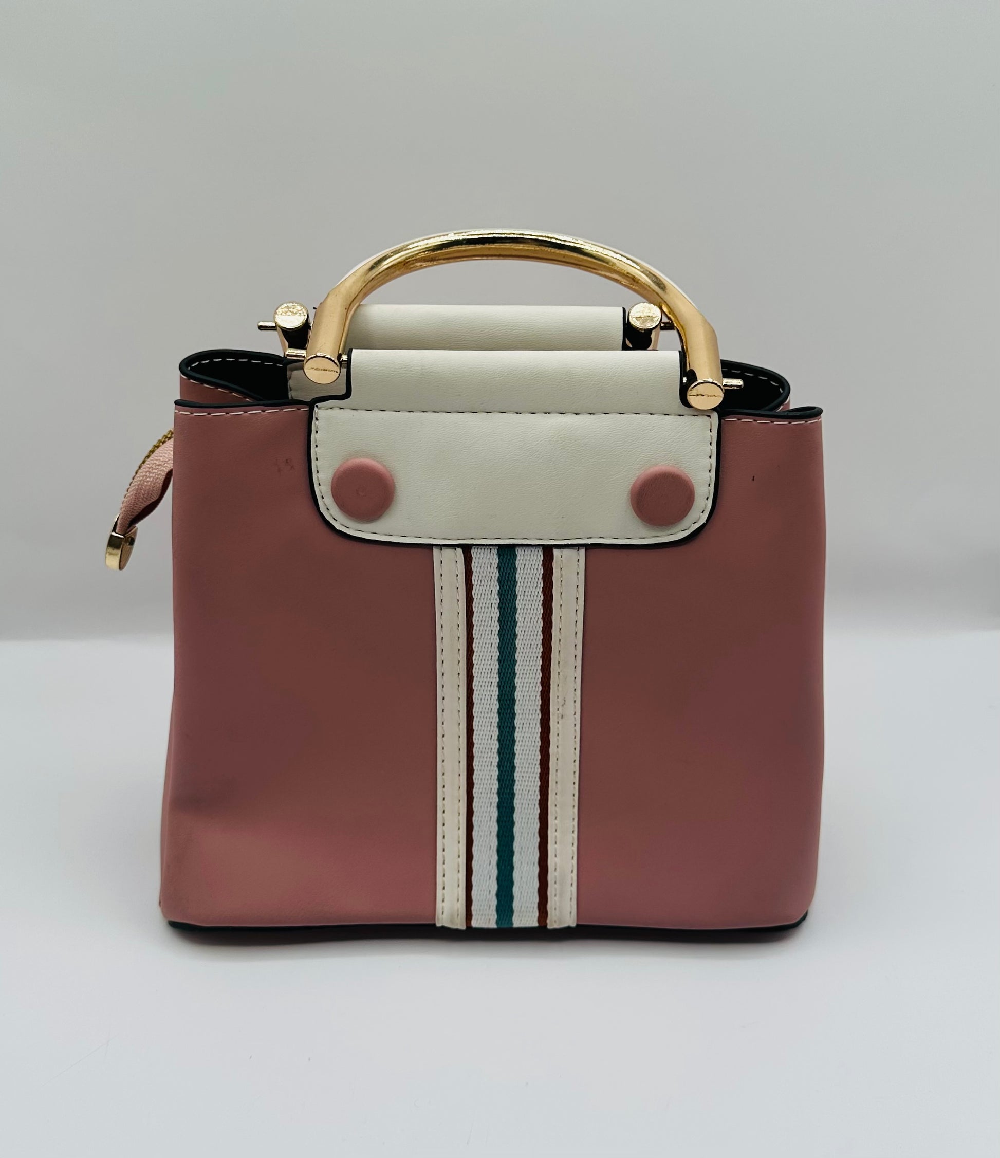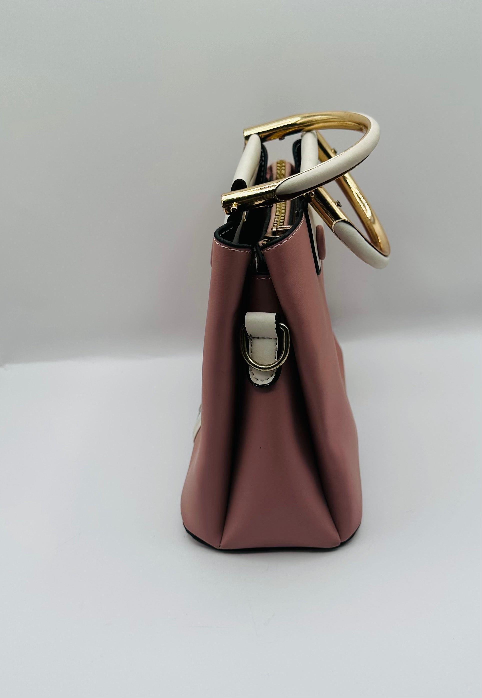 The Pinkette is a versatile and stylish accessory with a metal handle and attachable strap that can easily hold all your belongings. Perfect for any occasion, it is designed to suit all your needs. Make a statement with the Pinkette.